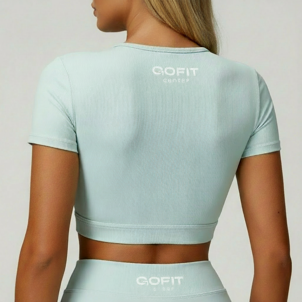 This light blue cropped polo brings sporty style with a clean, modern twist.