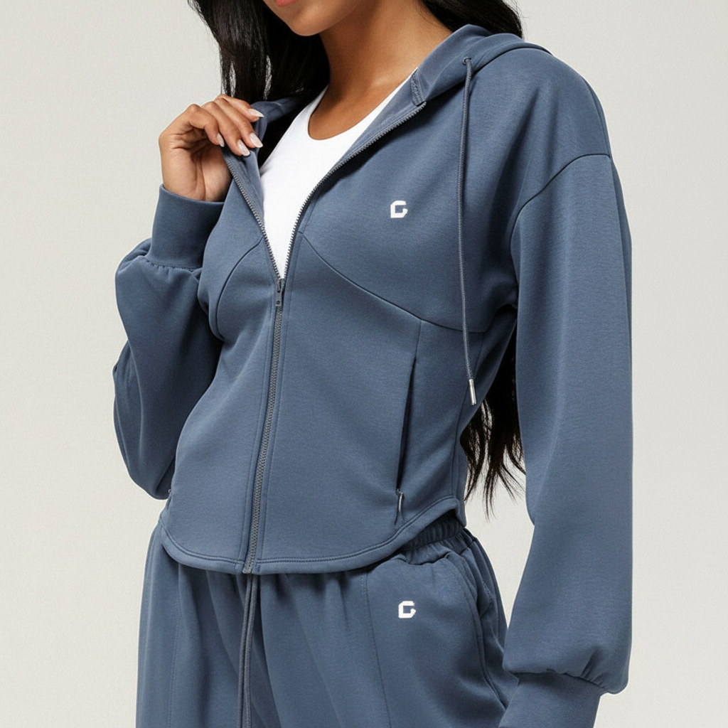 This zip-up hoodie blends athletic comfort with a sleek, modern look for everyday wear.